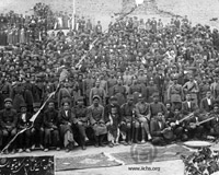 جشن الغای قانون کاپیتولاسیون با شرکت جمعی از نظامیان و اهالی محلی در اداره بلدیه کردستان