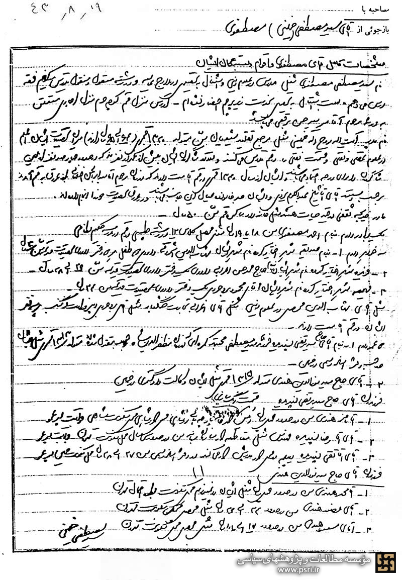 بازجویی از: آقای سید مصطفی (خمینی) مصطفوی