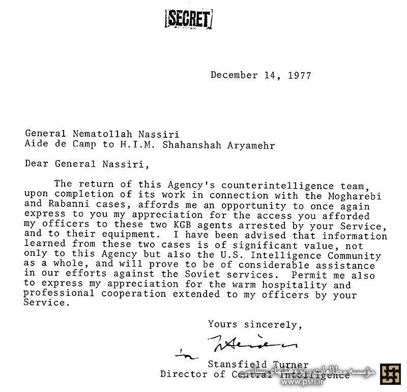 [۱] منوچهر هاشمی، مدیرکل ضدجاسوسی ساواک، در کتاب خاطراتش مینویسد: «ایران از چند جهت مورد توجه شدید سرویسهای اطلاعاتی کشورهای مختلف و عمدتاً دو بلوک شرق و غرب بود. بلوک شرق و در رأس آنها اتحاد جماهیر شوروی علاوه بر این که مستقیماً در ایران منافعی را دنبال مینمود و بر آن پای میفشرد، به این کشور به صورت یکی از پایگاههای مهم دنیای غرب، بهخصوص آمریکا و انگلیس نگاه میکرد. از این دو نقطهنظر، شاید ایران اگرنه بزرگترین، قطعاً یکی از مهمترین کشورهای «هدف» برای سرویسهای اطلاعاتی شوروی، یعنی کاگب و جیآریو بود. سرویسهای اطلاعاتی غرب و عمدتاً سیآیای و امآی۶ هم بنا به دو دلیل مشابه یادشده، هدفهای خود را در ایران دنبال میکردند. ایران یکی از همپیمانان مهم و بسیار نزدیک غرب در منطقه بود. به این اعتبار، آنها هم این حق را برای خود قائل بودند که از منافع خود در ایران حراست کنند. از آنجایی که منافع غرب با مطامع شوروی در تضاد و تقابل میبود، جدال این دو حریف قَدَر در کشور ما اجتنابناپذیر مینمود.» (هاشمی، داوری: سخنی دربارۀ کارنامۀ ساواک، ص ۵۲۸.)
